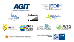 AGIT mbH, digitalHUB Aachen, EDIH Rheinland, FH Aachen, Handwerkskammer Aachen, IHK Aachen, Kreis Düren, Kreis Euskirchen, Regina e. V., Region Aachen – Zweckverband, StädteRegion Aachen, WFG für den Kreis Heinsberg, WIN.DN, Stadt Aachen.